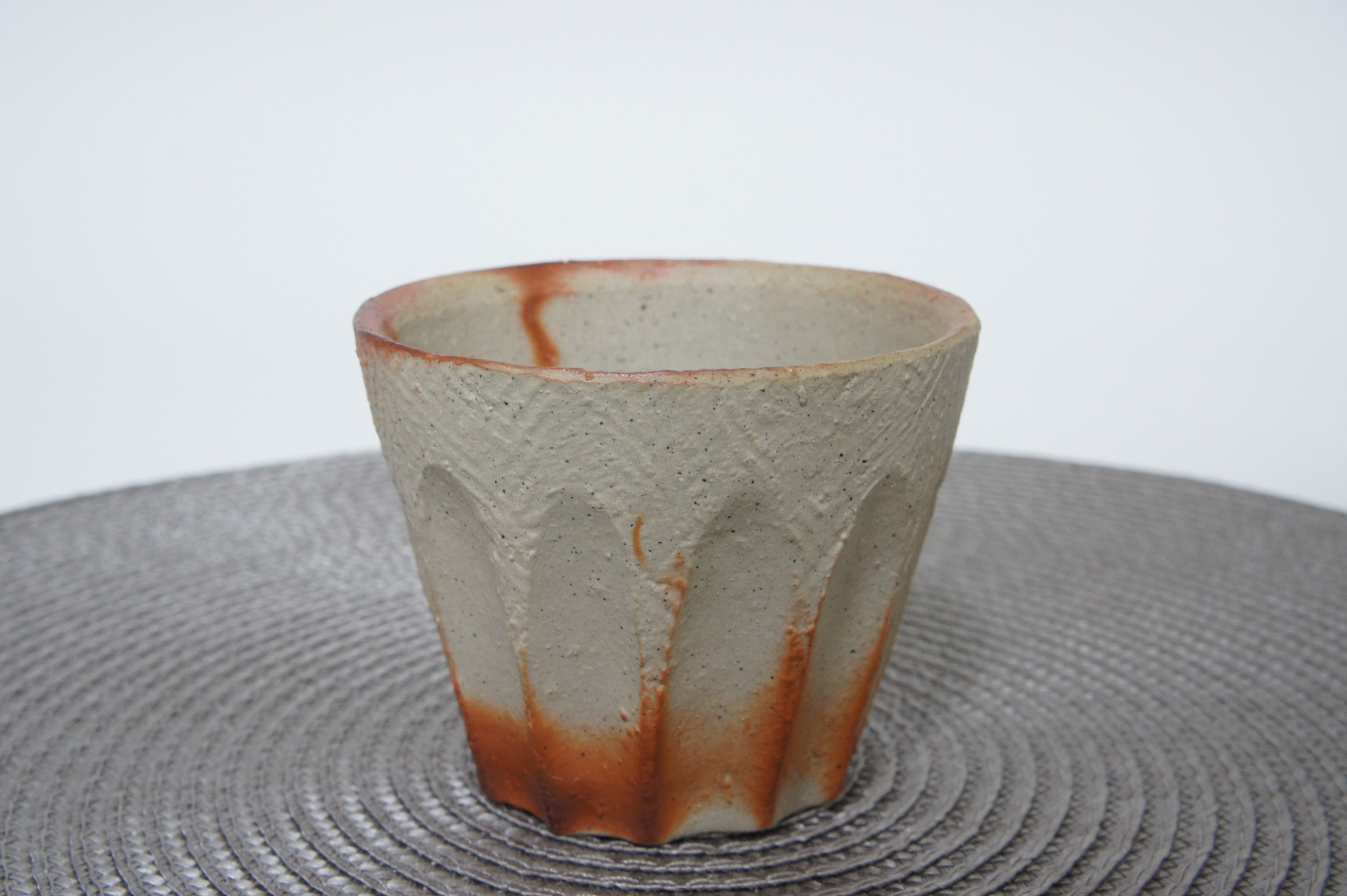 陶芸家 末廣学の備前火襷カップです。